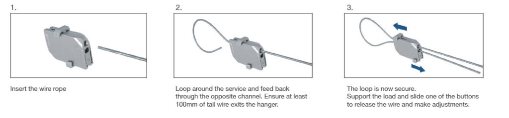 A multi-purpose wire rope hanger, ideal for the suspension of a variety of building services.